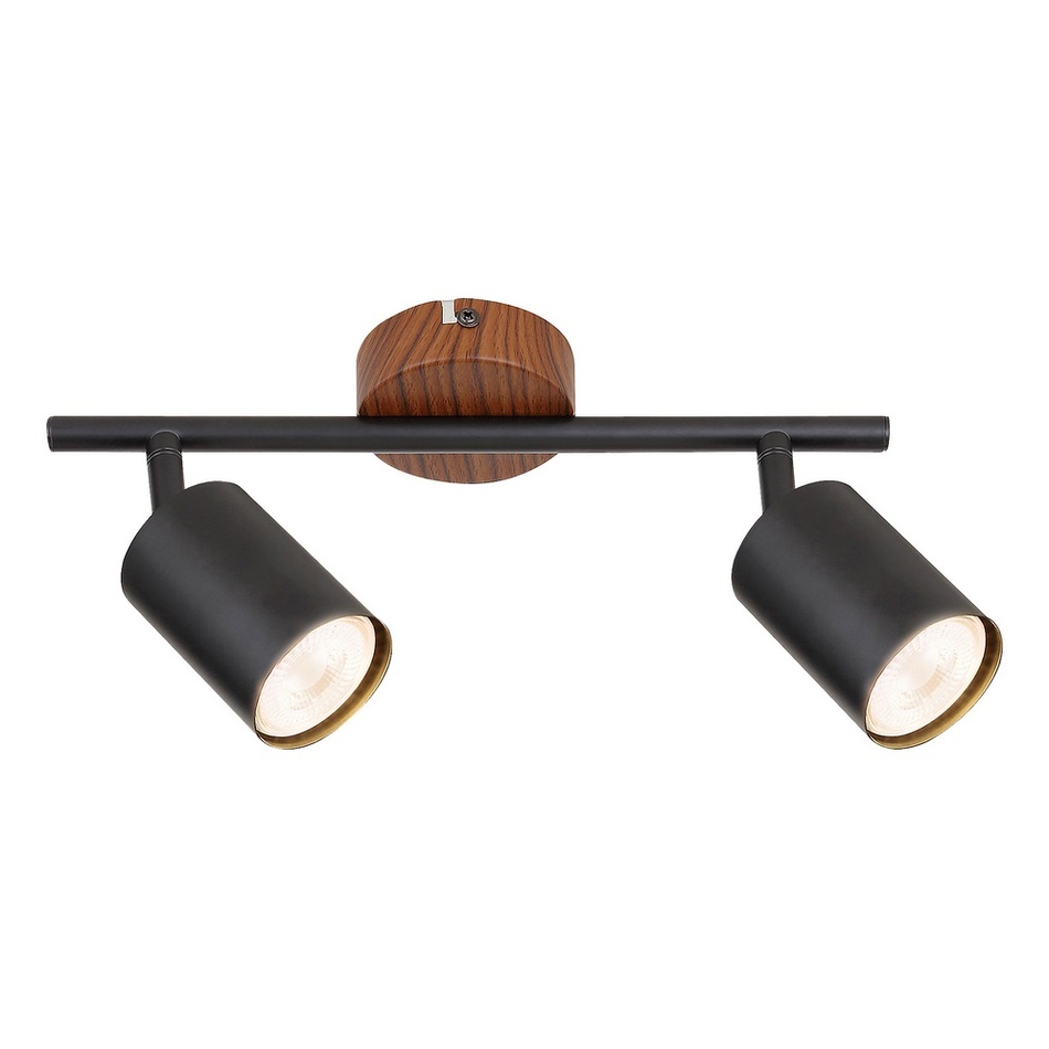 Bodové svietidlo Edmund s 2 žiarovkami, reprezentujúce industriálny štýl, bude štýlovým kúskom vašej obývačky alebo spálne. Ku okrúhlemu dekoračnému podstavcu v prevedení dub je pripojená kovová nosná tyč, na nej sú pripevnené ohybné hlavy svietidla. Podstavec dopĺňajú valcové čierne tienidlá.Svietidlo je možné použiť s dvoma žiarovkami, každá s výkonom do 25 W. V závislosti na vašich preferenciách si môžete pre tento model zvoliť teplé alebo prirodzené biele svetelné zdroje. Rozmery 2-žiarového bodového svietidla sú: priemer každého tienidla 55 mm, montážny priemer 80 mm. Tento model je dodávaný bez svetelných zdrojov.