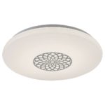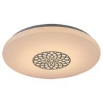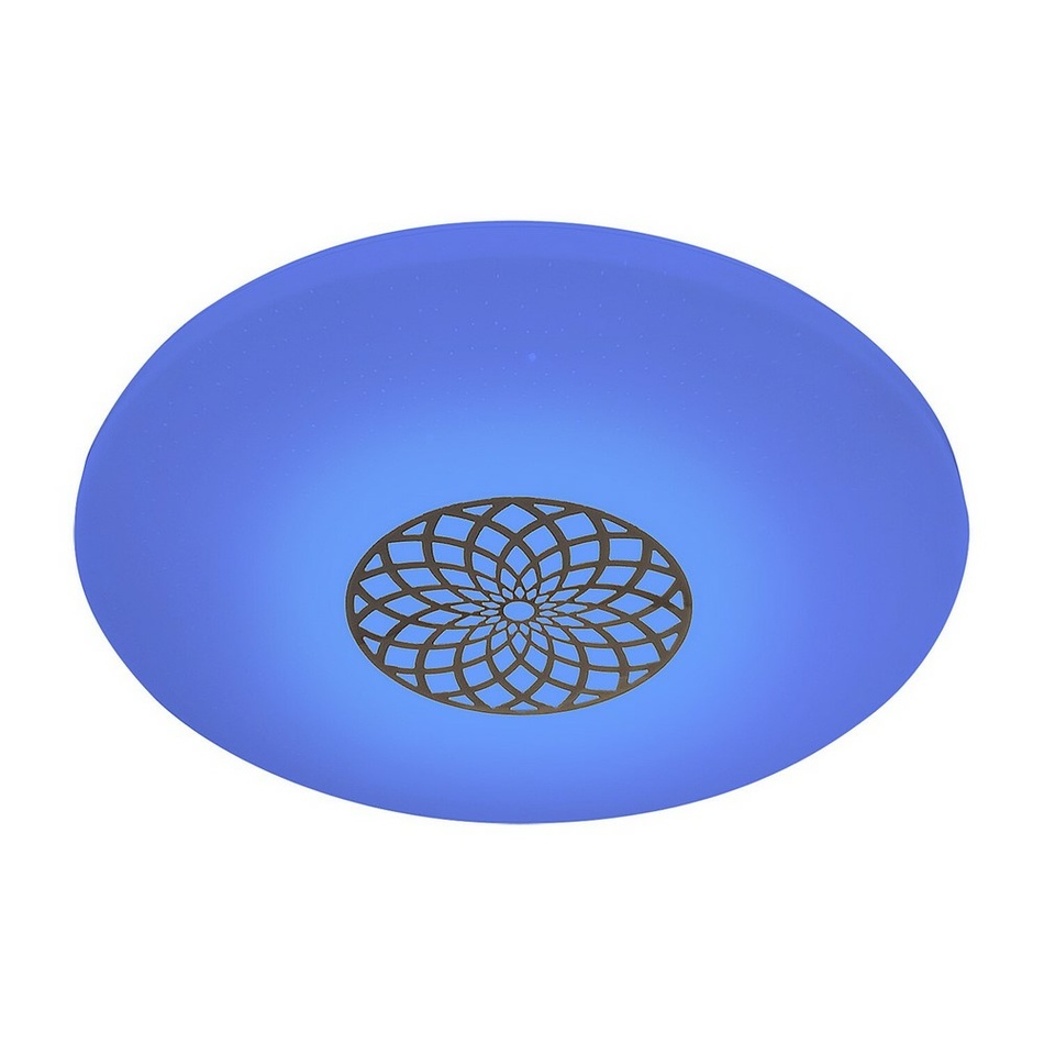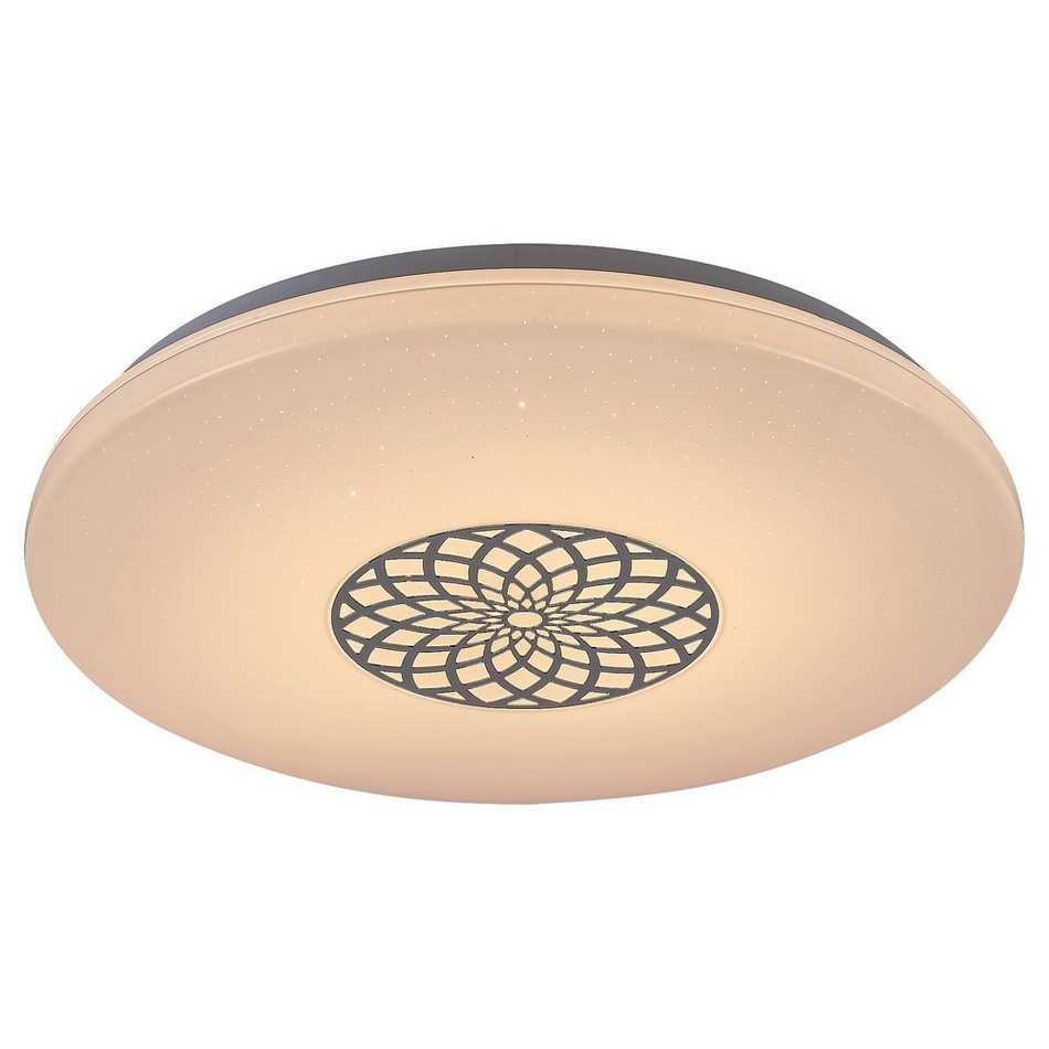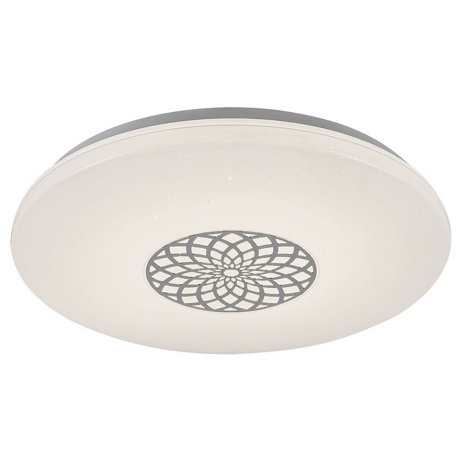 Moderné okrúhle stropné svietidlo Ophelia pre jeho niekoľko doplnkových funkcií odporúčame do obývacej izby, spálne alebo pracovne. Kovové svietidlo chrómovej farby je doplnené o biele plastové tienidlo s hviezdnym efektom. Tienidlo je zdobené vzorom pripomínajúcim mandalu.Svietidlo Ophelia obsahuje vstavaný LED svetelný zdroj s výkonom 24 W, svetelným tokom 2 000 lúmenov a životnosťou 25 000 hodín. Farebnú teplotu tohto svietidla je možné nastaviť v rozmedzí 3 000-6 500 K, tj môžete nastaviť teplé, prirodzené alebo studené biele svetlo. Okrem toho si môžete zvoliť RGB osvetlenie. Svietidlo je stmievateľné, preto je možné regulovať jeho jas. Tiež má časovač, pamäť a funkciu nočného osvetlenia. Všetky extra funkcie je možné nastaviť pomocou WiFi aplikácie alebo diaľkového ovládača.