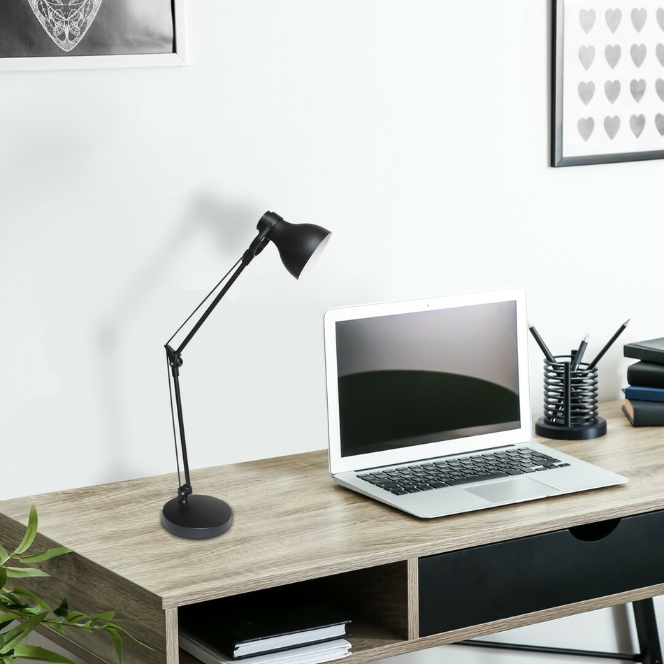 S matnou čiernou farbou a elegantným dizajnom, kovové stolové svietidlo Carter urobí dobrú prácu vo vašej pracovni alebo na stoloch vašich školákov. Čierny kábel doplní charakteristický vzhľad. Vzhľadom na jeho tmavú farbu sa odporúča primárne namontovať do väčších chlapčenských izieb.Výška svietidla vám umožní efektívne osvetliť dostatočne veľkú plochu na čítanie, písanie a učenie. Pri umiestňovaní svietidla Carter sa musíte uistiť, že je na vašej pravej strane, aby sa nezakrývalo svetlo z lampy. Stonka stolného svietidla sa dá ohnúť a hlava sa dá posúvať, takže výšku a uhol prichádzajúceho svetla môžete kedykoľvek upraviť podľa svojich aktuálnych potrieb.Tento model je možné použiť s energeticky úsporným svetelným zdrojom s výkonom až 11 W, pätica typu E14. Stolové svietidlo Carter vybavené páčkovým spínačom má šírku 310 mm a výšku 580 mm. Svietidlo sa dodáva bez žiarovky.