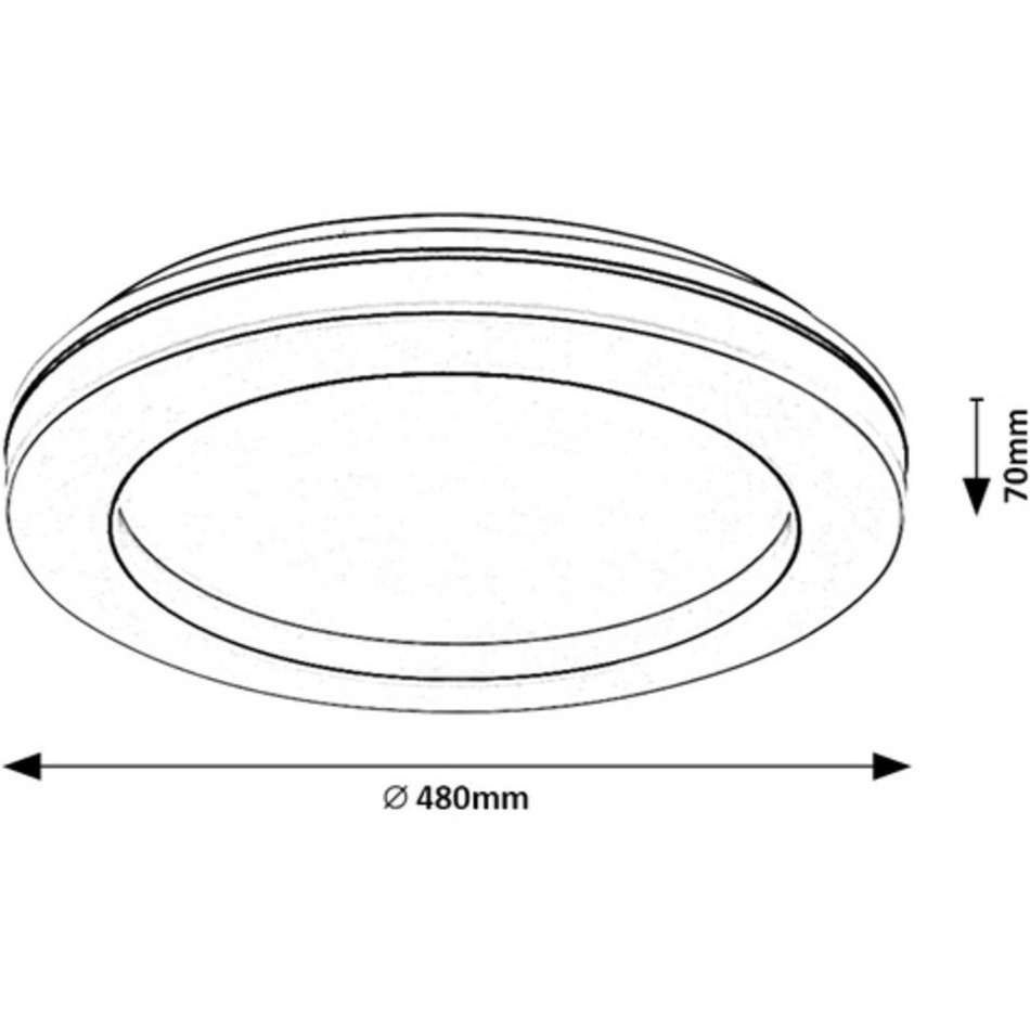 Moderné stropné svietidlo Cooperius odporúčame tým, ktorí majú radi inteligentné modely, kombinujúce čistý dizajn s extra funkciami. Biele, okrúhle svietidlo z kovu a plastu je doplnené o biely plastový kryt.Cooperius má zabudovaný LED svetelný zdroj energetickej triedy G, ktorý má výkon 47 W, svietivosť 3 800 lúmenov s tienidlom, 4 800 lúmenov bez tienidlo a životnosť 25 000 hodín. Farebnú teplotu stropného svietidla je možné meniť medzi 3000-6500 K, tzn. môže svietiť teplým, prirodzeným alebo studeným bielym svetlom.Lampa je stmievateľná, čiže je možné regulovať jas, okrem toho má aj funkcie pamäte, časovača a nočného svietenia. Teplotu farieb a funkciu pamäte je možné nastaviť pomocou spínača či diaľkového ovládača, zatiaľ čo jas a časovač je možné nastaviť pomocou diaľkového ovládača.Cooperius je vybavený aj batériou s napätím 1,5 V a kapacitou 400 mAh. Priemer stropného svietidla je 480 mm a vzdialenosť od stropu 70 mm.