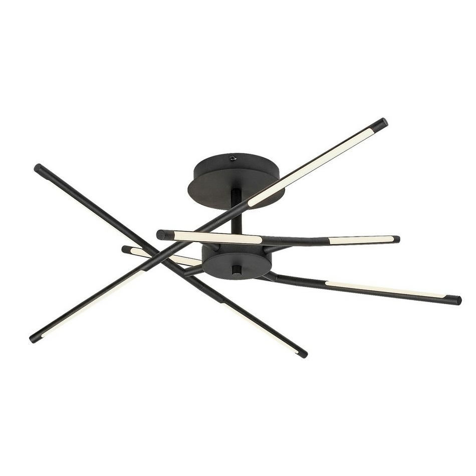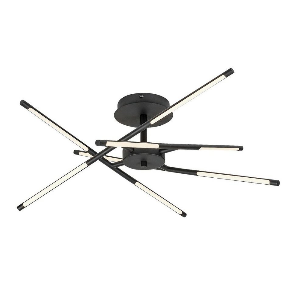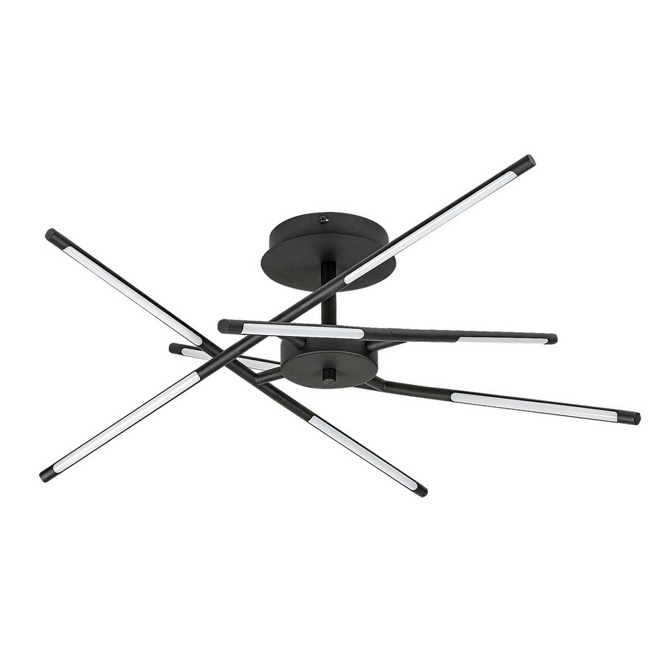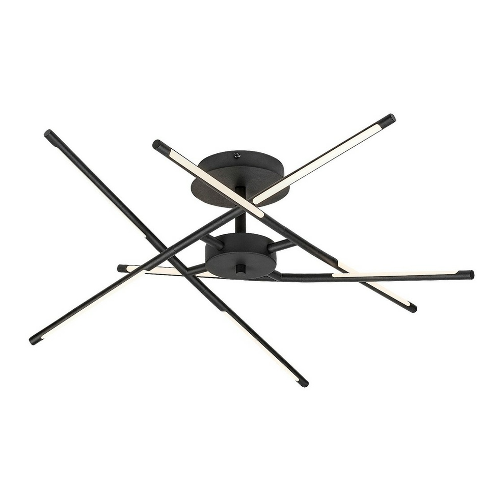 Stropné svietidlo Henli v modernom štýle sa vďaka svojmu jedinečnému vzhľadu môže stať charakteristickým prvkom vašej obývačky alebo spálne. Tento veľkolepý model sa skladá z pretínajúcich sa tyčových prvkov, ktoré je možné otáčať, takže celkový efekt môžete meniť podľa svojich predstáv. Čierne kovové svietidlo je doplnené bielym akrylovým tienidlom a je možné ho pripevniť na strop pomocou malého okrúhleho ozdobného podstavca.Svietidlo Henli má zabudovaný LED svetelný zdroj energetickej triedy G s výkonom 30 W, svietivosťou 1300 lúmenov s tienidlom, 3850 lúmenov bez tienidla a so životnosťou 20 000 hodín. Svetelný zdroj s farebnou teplotou 3000 K osvetľuje teplým bielym svetlom, ktoré pomáha vytvárať útulnú domácu atmosféru, uvoľňuje oči a je ideálny na uvoľnenie, relaxáciu.Rozmery stropného svietidla Henli sú tieto: priemer 760 mm, vzdialenosť od stropu 250 mm, inštalačný priemer 150 mm.