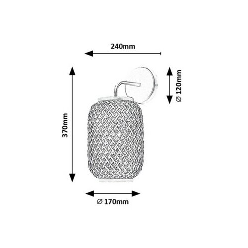Svetlo dole smerujúceho tienidla lampy je pekne filtrované riedko tkaným ratanom, čo umožňuje príjemné osvetlenie. Adalla je možné použiť s jedným svetelným zdrojom s výkonom až 40 W, objímkou typu E27. K tomuto modelu sa najviac hodí svetelný zdroj s teplým bielym svetlom.Rozmery nástenného svietidla: výška 370 mm, priemer 170 mm, vzdialenosť od steny 240 mm, montážny priemer 120 mm. Lampa Adalla je dodávaná bez svetelného zdroja.
