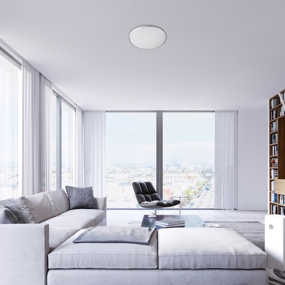 Veľké okrúhle stropné svietidlo Engon je vhodnou voľbou do každej modernej obývacej izby alebo spálne. Model s jednoduchým tenkým dizajnom nenápadne zapadá do roviny stropu. Pre tých, ktorí preferujú funkciu pred špeciálnym dizajnom, je táto lampa perfektnou voľbou.