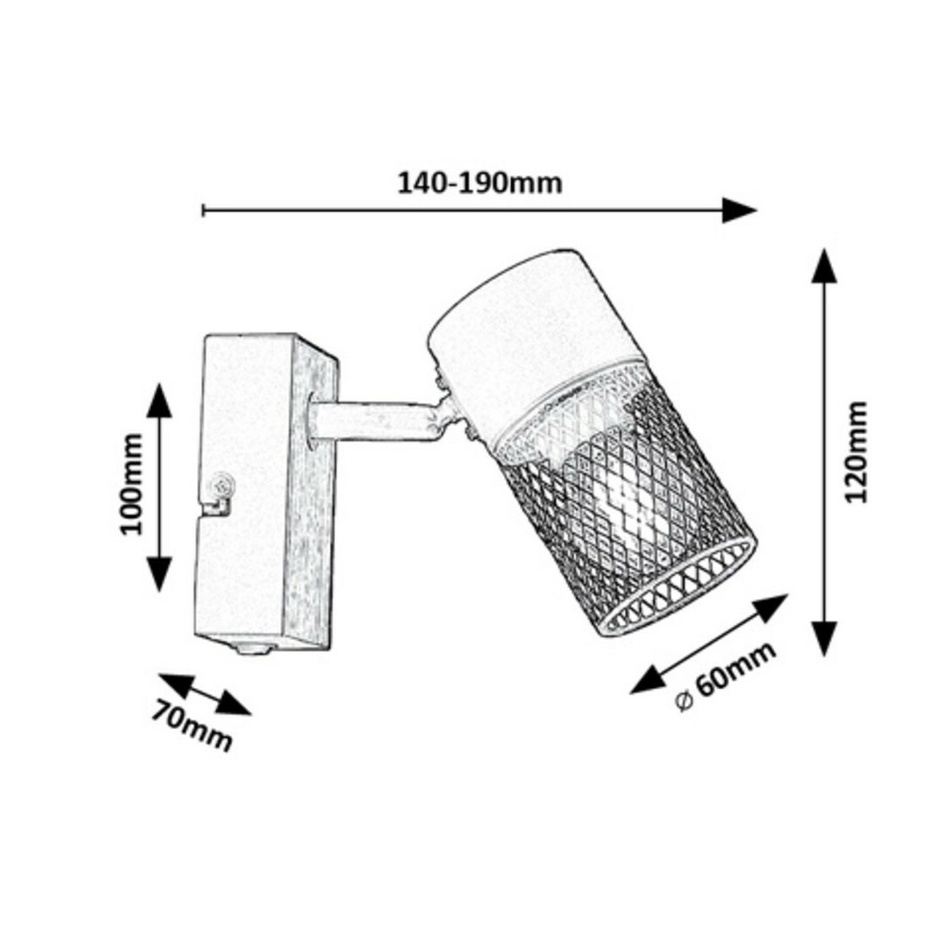 Jednotné stropné bodové svietidlo Metta v industriálnom štýle sa odporúča predovšetkým do obývacej izby alebo spálne. Model v dubovej farbe, vyrobený z kovu a dreva, je doplnený zo spodnej časti otvoreným tienidlom s čiernou valcovitou mriežkou, a je možné ho upevniť na stenu pomocou zvislého obdĺžnikového ozdobného podstavca. Vďaka pohyblivej hlave lampy môžete svetlo nasmerovať podľa svojich predstáv.Svietidlo Metta je možné používať s jedným svetelným zdrojom s maximálnym príkonom do 40 W, typ pätice E14. V závislosti na vašom vkuse a mieste inštalácie si môžete vybrať zdroj teplého alebo prirodzeného bieleho svetla. V spálni sa v nástennej lampe odporúča používať teplú bielu žiarovku, ktorá pomôže vytvoriť útulnú domácu atmosféru. Tento dojem ešte umocňuje husto tkané mriežkované tienidlo, ktoré jemne filtruje svetlo z lampy.Rozmery jednobodového svietidla Metta s vypínačom sú: výška 120 mm, priemer 60 mm, vzdialenosť od steny 140 mm. Tento model sa dodáva bez svetelného zdroja.