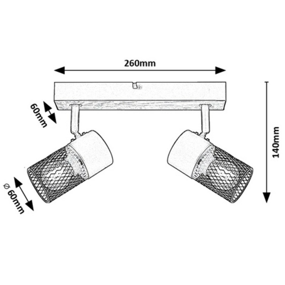 Dvojité stropné bodové svietidlo Metta v industriálnom štýle sa odporúča predovšetkým do obývacej izby alebo spálne. Model v dubovej farbe, vyrobený z kovu a dreva, je doplnený zo spodnej časti otvorenými tienidlami s čiernymi valcovitými mriežkami, a možno ho upevniť na strop pomocou podlhovastého obdĺžnikového ozdobného podstavca. Vďaka pohyblivým lampovým hlaviciam, ktoré sú umiestnené vedľa seba, môžete svetlo smerovať podľa svojich predstáv.Svietidlo Metta je možné používať s dvoma svetelnými zdrojmi každý s maximálnym príkonom do 40 W a päticami typu E14. V závislosti na vašom vkuse a mieste inštalácie si môžete vybrať zdroje teplého alebo prirodzeného bieleho svetla. V spálni sa v stropnej lampe odporúča používať teplé biele žiarovky, ktoré pomôžu vytvoriť útulnú domácu atmosféru.Rozmery dvojitého bodového svetla Metta sú tieto: šírka 260 mm, priemer tienidiel 60 mm, vzdialenosť od stropu 140 mm. Tento model sa dodáva bez svetelných zdrojov.