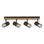 Štvorbodové stropné svietidlo Metta v industriálnom štýle sa odporúča predovšetkým do obývacej izby alebo spálne. Model v dubovej farbe, vyrobený z kovu a dreva, je doplnený zo spodnej časti otvorenými tienidlami s čiernymi valcovitými …