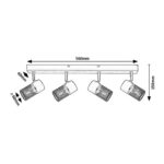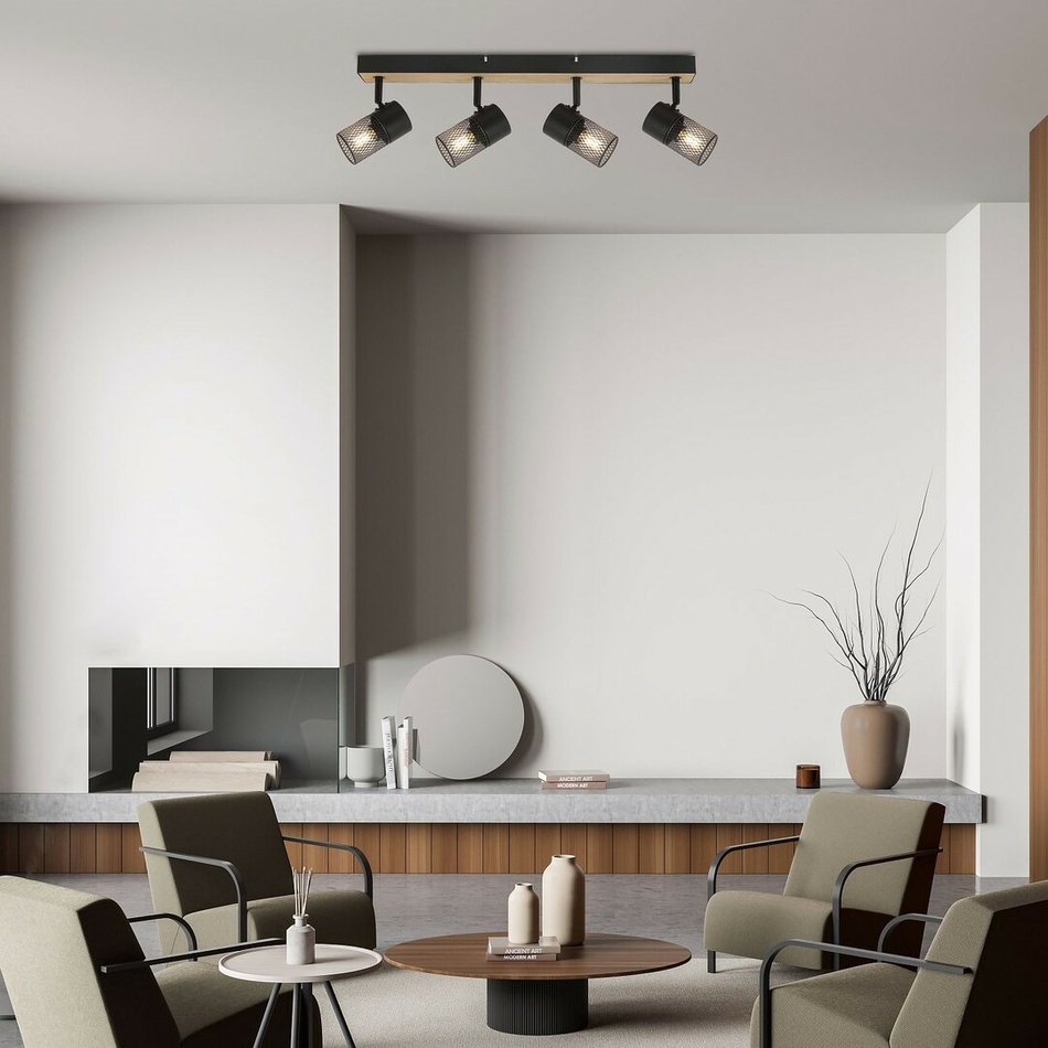 Štvorbodové stropné svietidlo Metta v industriálnom štýle sa odporúča predovšetkým do obývacej izby alebo spálne. Model v dubovej farbe, vyrobený z kovu a dreva, je doplnený zo spodnej časti otvorenými tienidlami s čiernymi valcovitými mriežkami, a je možné ho upevniť na strop pomocou dlhého obdĺžnikového ozdobného podstavca. Vďaka pohyblivým lampovým hlavám umiestneným vedľa seba je možné svetlo nasmerovať podľa potreby, takže tento model je ideálny aj pre osvetlenie väčšej miestnosti.Svietidlo Metta je možné používať so štyrmi svetelnými zdrojmi každý s maximálnym príkonom do 40 W a päticami typu E14. V spálni sa v stropnej lampe odporúča používať teplé biele žiarovky, ktoré pomôžu vytvoriť útulnú domácu atmosféru.Rozmery štvoritého bodového svietidla Metta sú nasledujúce: šírka 560 mm, priemer 60 mm pre každé svietidlo a vzdialenosť od stropu 150 mm pre každé svietidlo. Tento model sa dodáva bez svetelných zdrojov.