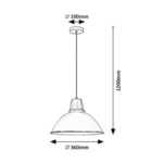 Jednodielny luster Wilbour v industriálnom štýle môže byť jedinečným doplnkom modernej obývacej izby alebo jedálne. Čierna lampa, celá vyrobená z kovu, je doplnená o biele tienidlo a je možné pripevniť na strop pomocou malej okrúhlej ozdobnej základne. Široké tienidlo lampy v tvare dáždnika umožňuje vytekanie svetla na veľkej ploche v spodnej časti, takže svietivosť lampy je vynikajúca.Wilbour je možné použiť s jedným svetelným zdrojom s výkonom až 60 W, objímkou typu E27. Podľa vášho vkusu si môžete vybrať zdroj svetla s teplým alebo prirodzeným bielym svetlom.Rozmery každého lustra Wilbour sú nasledujúce: priemer 360 mm, presah 1200 mm, montážny priemer 100 mm. Tento model je dodávaný bez svetelného zdroja.