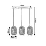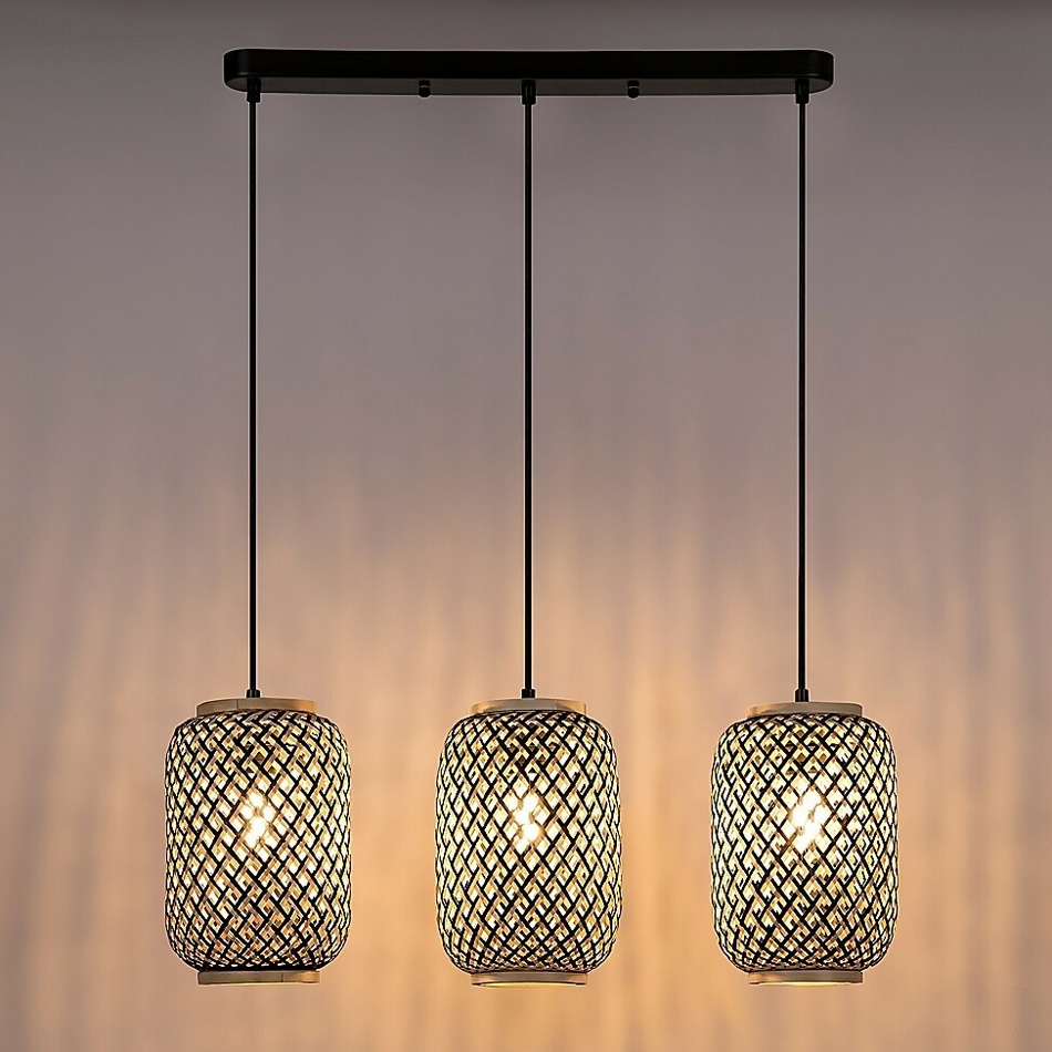 Trojitý záves Adalla v škandinávskom štýle odporúčame predovšetkým tým, ktorí majú radi modely z prírodných materiálov. Toto matné čierne kovové svietidlo určené do obývacej izby je doplnené viacfarebnými ratanovými tienidlami súdkovitého tvaru a je možné ho pripevniť na strop pomocou podlhovastého dekoračného podstavca so zaobleným koncom. Materiál káblov je textil.Svetlo hláv svietidiel umiestnených v rade vedľa seba pekne filtrujú riedko tkané ratanové poťahy, čo umožňuje útulné osvetlenie. Adalla je možné použiť s tromi svetelnými zdrojmi, každý s výkonom do 40 W, objímka typu E27. Podľa vášho vkusu si môžete vybrať svetelné zdroje s teplým alebo prirodzeným bielym svetlom.Rozmery svietidla Adalla: šírka 575 mm, výška 260 mm, priemer každého tienidla 170 mm, presah svietidla 1700 mm. Tento model je dodávaný bez svetelných zdrojov.