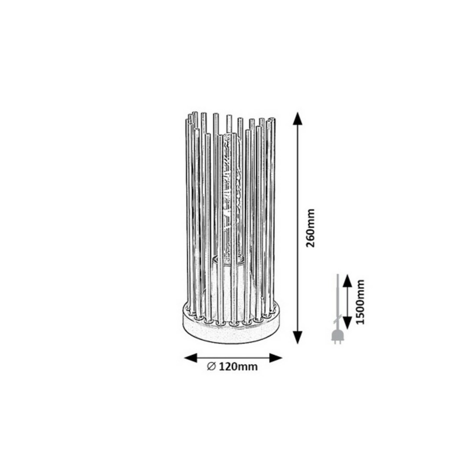 Stolná lampa Roxas v modernom štýle je vlastným dizajnom značky Rabalux, ktorá sa vďaka svojmu jedinečnému dizajnu a teplým tónom môže stať elegantným a útulným prvkom zariadenia obývačky. Vďaka malým rozmerom pre ňu ľahko nájdete miesto na nižšom stole alebo dokonca na polici.Matná čierna lampa je celá vyrobená z kovu a jej valcovitý tvar je daný dlhými tenkými medenými tyčami, zatiaľ čo malý okrúhly podstavec je matne čierny. Pretože zdroj svetla je jasne viditeľný cez tienidlo, odporúča sa používať tento model s estetickou žiarovkou iného tvaru, než sú bežné žiarovky.Svietidlo Roxas je možné používať s jedným svetelným zdrojom s maximálnym príkonom do 40 W, typ pätice E27. Ak chcete navodiť útulnú, domácu atmosféru, odporúčame používať pre lampu teplú bielu žiarovku. Stolná lampa Roxas s textilným káblom má výšku 260 mm, priemer 120 mm. Tento model sa dodáva bez svetelného zdroja.