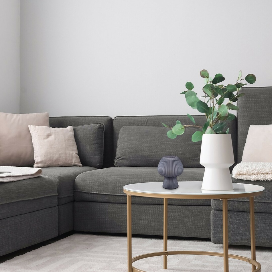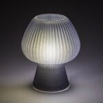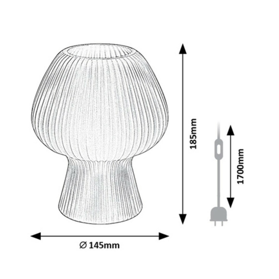 S elegantnou dekoratívnou stolnou lampou Vinelle vytvoríte vo svojej obývačke príjemnú, intímnu atmosféru. Lampu v tvare pohára je možné vďaka jej malým rozmerom ľahko umiestniť na nižší stôl alebo poličku.Nohy a hlava lampy modelu z tónovaného skla nie sú ostro oddelené, takže jemné línie modelu Vinelle sú dokonale zvýraznené. Mierne rozšírená robustná základňa zaisťuje stabilitu lampy a rebrovaný povrch tienidla dodáva lampe vzrušujúci vzhľad.Dekoratívnu lampu je možné použiť s jedným svetelným zdrojom s maximálnym príkonom do 60 W, typ pätice E14. Podľa svojho vkusu si môžete vybrať zdroj teplého alebo prirodzeného bieleho svetla.Rozmery stolnej lampy sú: výška 185 mm, priemer 145 mm, dĺžka textilného kábla 1700 mm. Dekoratívna lampa Vinelle s káblovým vypínačom sa dodáva bez svetelného zdroja.
