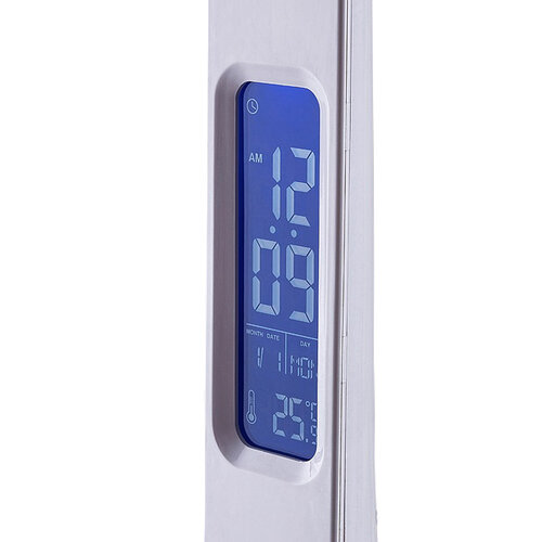 Moderná stolná LED lampa Amato s výškou 44 cm je vhodná do pracovne alebo študovne. Má možnosť stmievania na 10-40 alebo 100% svojej svietivosti a disponuje LCD obrazovkou, ktorá ukazuje teplotu, čas, budík a kalendár. Špecifikácia: 7 W, 530/340lm, 4000 K. Lampička sa napája cez USB, ktoré je možné zapojiť do zásuvky cez adaptér alebo do USB portu. Dĺžka kábla je 100 cm.