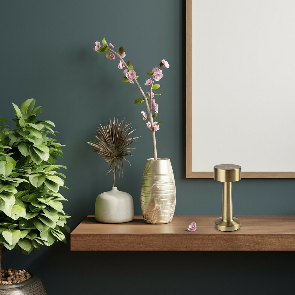 Stolná lampa Senan s elegantným vzhľadom a jedinečným dizajnom môže byť štýlovým a všestranným doplnkom vašej modernej obývacej izby alebo spálne. Kovové telo v zlatej farbe dopĺňa biele plastové tienidlo a robustná stonka je zakončená v okrúhlej ozdobnej základni. Stonka sa mierne zužuje smerom nahor a drží valcovú hlavu lampy.Stropné svietidlo malých rozmerov Senan má zabudovaný LED svetelný zdroj s výkonom 2,7 W, svietivosťou 40 lúmenov s tienidlom, 60 lúmenov bez tienidla a so životnosťou 20 000 hodín. Teplotu farieb stolnej lampy je možné meniť pomocou dotykového spínača: svetlo môžete nastaviť na 3000, 4000 alebo 6000 K, t. j. teplé, prirodzené alebo studené biele svetlo, v závislosti na vašom vkuse a momentálnej nálade.Senan má 3,7 V batériu s kapacitou 1200 mAh a je možné ju nabíjať pomocou kábla USB. Rozmery stolnej lampy sú: výška 210 mm, priemer 90 mm, dĺžka kábla 500 mm.