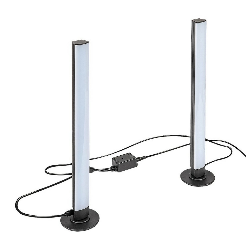 Stojaciu lampu Paco odporúčame najmä tým, ktorí si chcú vytvoriť modernú obývaciu izbu s efektným a hravým riešením osvetlenia, ktoré pomôže vytvoriť útulnú, domácu atmosféru. Vďaka malému priemeru je ľahké nájsť pre tento model miesto: môžete ho umiestniť vedľa pohovky, do rohu alebo kdekoľvek v obývačke.Valcovitá stojacia lampa je celá vyrobená z plastu a doplnená plochým okrúhlym podstavcom a bielym tienidlom. V jednej súprave sú dve lampy. Paco má zabudovaný LED zdroj svetla s výkonom 5 W a životnosťou 25 000 hodín.Lampu je možné stmievať pomocou diaľkového ovládača, čo znamená, že jej jas je možné meniť, a je schopná osvetlenie RGB, takže sa vďaka premenlivým farbám môže kedykoľvek prispôsobiť vašej nálade a podporuje relaxáciu a uvoľnenie vo večerných hodinách. Stojacia lampa Paco má tieto rozmery: šírka 35 mm, výška 380 mm, inštalačný priemer 80 mm, dĺžka kábla 2000 mm.