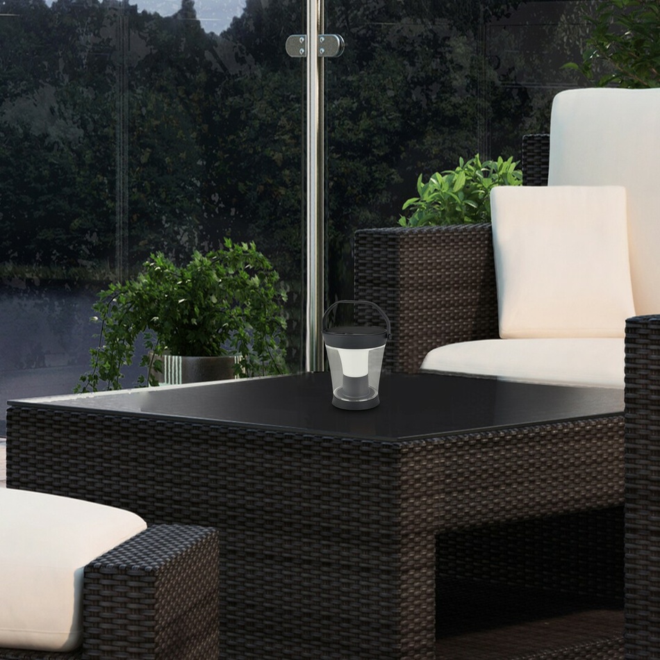 Solárnu vonkajšiu lampu Angers v modernom štýle s mnohými doplnkami môžete umiestniť na terasu alebo do záhrady. Tento elegantný model v sivej farbe je vyrobený výlučne z plastu, má priehľadné tienidlo, okrúhlu ozdobnú základňu a praktickú rukoväť.Angers má zabudovaný LED svetelný zdroj s výkonom 3 W, svietivosťou 300 lúmenov s tienidlom a 450 lúmenov bez tienidla a životnosťou 15 000 hodín. Svetelný zdroj s farebnou teplotou 4000 K vyžaruje prirodzené biele svetlo. Lampa je tiež schopná RGB osvetlenia a je možné ju nabíjať cez USB kábel. Dĺžka kábla je 1000 mm. Vďaka zabudovanému senzoru lampa prispôsobuje svoj jas vonkajším podmienkam, ale je aj stmievateľná, takže si jas môžete nastaviť sami pomocou prepínača.Batéria má napätie 3,7 V a kapacitu 2000 mAh. Angers má šírku 240 mm a priemer 120 mm. Krytie IP54 zaručuje, že je chránené proti prachu a striekajúcej vode z akéhokoľvek smeru. Ideálny rozsah pracovných teplôt je -10 – 40 °C.