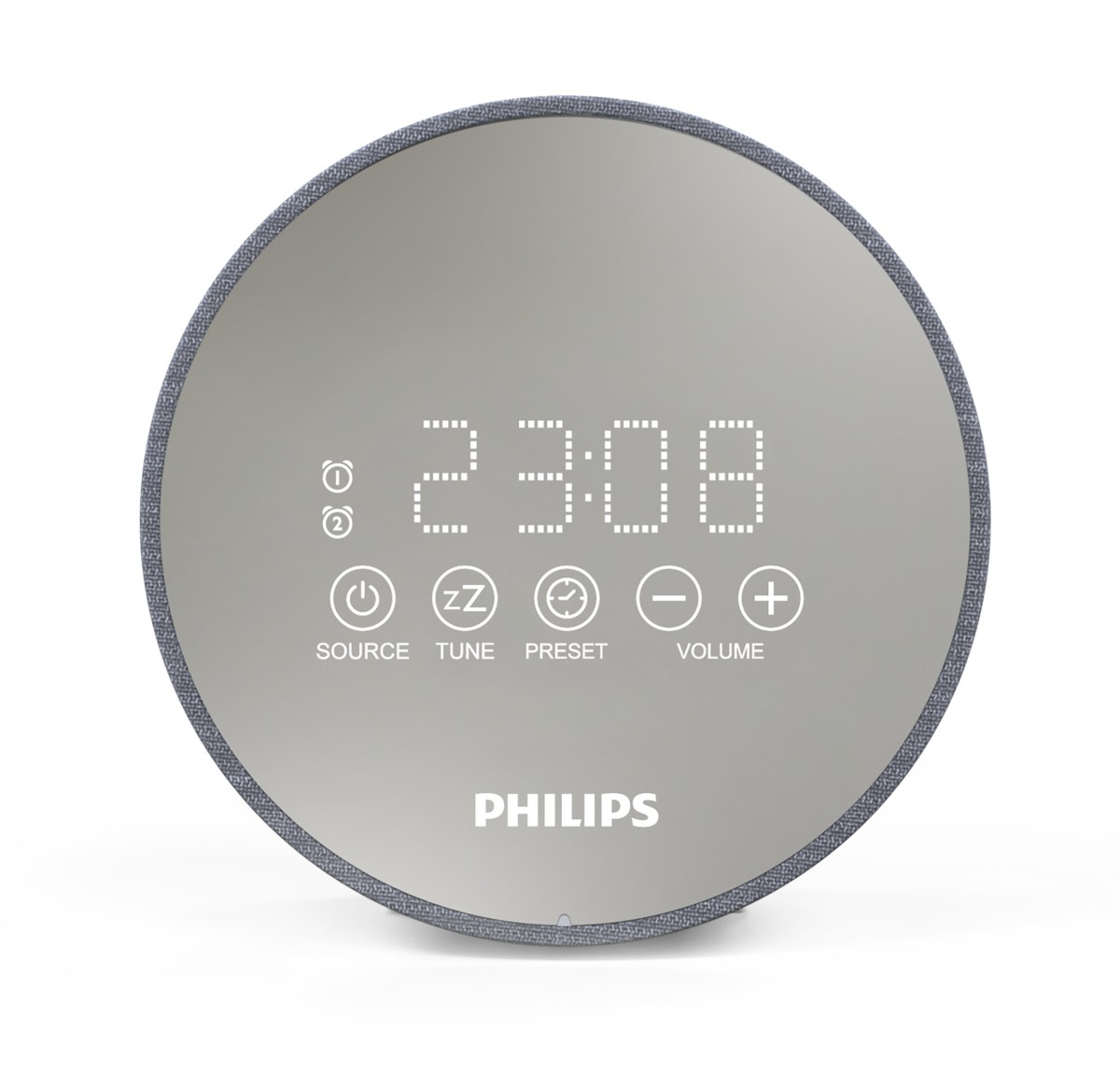 Tento budík je skutočný elegán medzi rádiobudíkmi. Displej so zrkadlovým povrchom je prehľadný, jasný a zároveň funguje ako ovládací panel. Rádiobudík Philips TADR402 / 12 vás ráno zobudí aj s plne nabitým telefónom. Je totiž vybavený portom USB pre nabíjanie. Dotykové ovládanie rádiobudíka je veľmi jednoduché. Poklepaním na hornú časť budíka aktivujete nočné svetlo. Druhým stlačením znížite jeho jas na príjemne rozptýlené svetlo. Milo vás prekvapí budík, ktorý nastavíte na dva rôzne časy, s odloženým budením. Funkcia jemného budenia stupňuje hlasitosť rádia alebo tón budíka a vstávanie je tak oveľa príjemnejšie. S nastaveným časovačom potom môžete v pokoji zaspávať pri počúvaní hudby. Po uplynutí zvolenej doby sa automaticky vypne. Pre prípadný výpadok el. prúdu je súčasťou záložná batéria CR2032.Rozmery: šírka 11 cm, výška 11 cm, hĺbka 5,5 cm. Hmotnosť: 280 g.Rádiobudík Philips TADR402 / 12Elegantný dizajnpevná konštrukcia, rám z šedej tkaninyZrkadlový displejDotykové ovládanieUSB port pre nabíjanieNočné svetlo – 2 režimyDuálny digitálny budíkNastavenie 2 budíkovOpakované budenie rádio alebo tón budíkaJemné budenie so stúpajúcou hlasitosťouČasovač vypnutia 15/30/60/90/120 minLED displejJas displeja: vysoký / stredný / nízkyFormát času 12/24Vstavaný reproduktorAnténa FMPásma tunera FM, digitálne ladenieFrekvenčný rozsah 87,5 – 108 MHzPredvolené: 20Výstupný výkon (RMS) 2 x 2 WVstup ACNapájanie 100 – 240 V, 50/60 HzZáložná batéria CR2032 (súčasťou balenia)Nabíjanie prostredníctvom USB