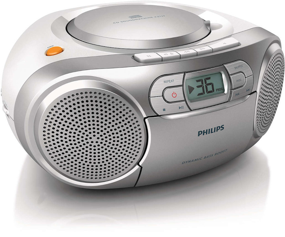 Philips CD Soundmachine. Prehráva MP3-CD, CD a CD-R/RW, FM tuner pre počúvanie rádia. Kazetový magnetofón s funkciou autostop.Napájanie: 220-240V.Typ batérií: veľkosť C (LR14), Počet batérií: 6, napätie batérií: 1,5V.Materiál: plast. Vyrobené spoločnosťou Philips.