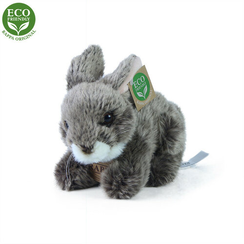 RAPPA Plyšový králik tmavosivý ležiaci, 17 cm, ECO-FRIENDLY