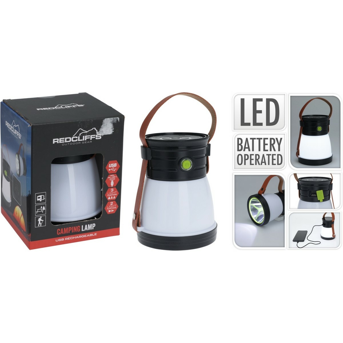 Malé, ľahké a úsporné kempingové svietidlo Redcliffs nevyhnutnosť pre každého dobrodruha. Ideálne pre outdoorové aktivity, ako je kempovanie, rybárčenie, horolezectvo, turistika, na účely chaty, dielne či pivnice alebo do domácnosti, vďaka svojej praktickosti nájde svietidlo uplatnenie kdekoľvek. Svietidlo je opatrené remienkom pre ľahké zavesenie či uchopenie alebo je možné, vďaka rovnému dnu jednoducho postaviť.Kempingové svietidlo disponuje dvoma svetelnými zdrojmi: