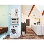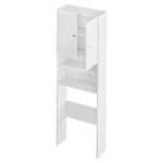 Skrinka na práčku v bielej farbe, s 2 otočnými dverami a 2 otvorenými priečinkami nad práčkou. Skrinka má guľaté úchytky vo farbe hliníka.Š/V/H: cca 64/190/26 …