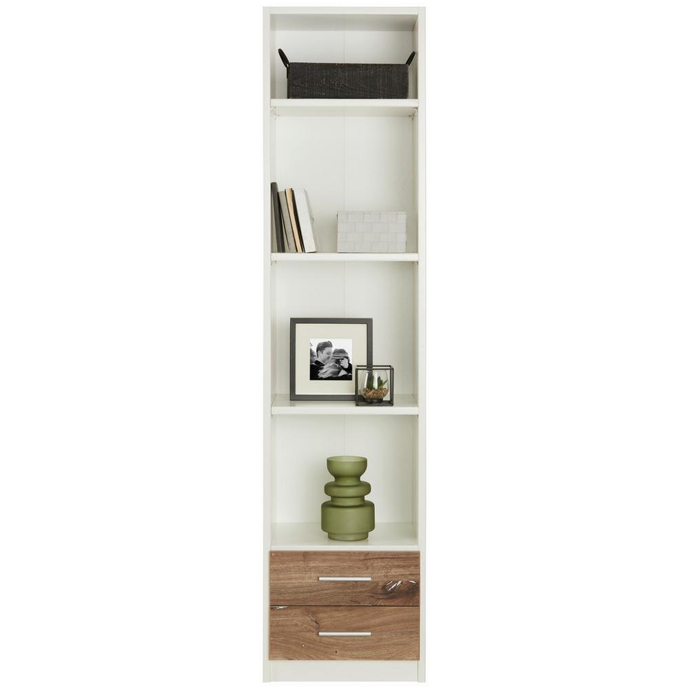 Tento elegantný regál je súčasťou série YOUNG a je ideálnym doplnkom do moderne zariadenej izby pre deti a mládež. S rozmermi približne 47 x 197 x 38 cm (Š/V/H) je vyrobený v kombinácii dekorov biela adub Flagstaff, takže perfektne doplní ostatný nábytok z tejto série, a zaistí v miestnosti poriadok a prehľad. Regál disponuje tromi policami, ktoré sa nedajú výškovo prestavovať. Spolu s dvomi zásuvkami rozdeľujú odkladací priestor na celkom päť otvorených priečinkov. Úchytkové lišty na zásuvkách v hliníkovej farbe podčiarkujú trendový vzhľad. Zariaďte izbu svojho potomka prakticky a štýlovo s nábytkovou sériou YOUNG! K dispozícii sú všetky nábytkové prvky, potrebné do izby pre mladých, a na výber sú tri farebné vyhotovenia: Dub san remo/biela, biela/svetlosivá alebo biela/dub Flagstaff. S týmto nábytkom si vyberáte certifikovaný produkt, vyrobený v Nemecku, ktorý zároveň spĺňa požiadavky „BQ – Alliance for Quality“ a nesie značku kvality „DIN EN ISO 9001“.
