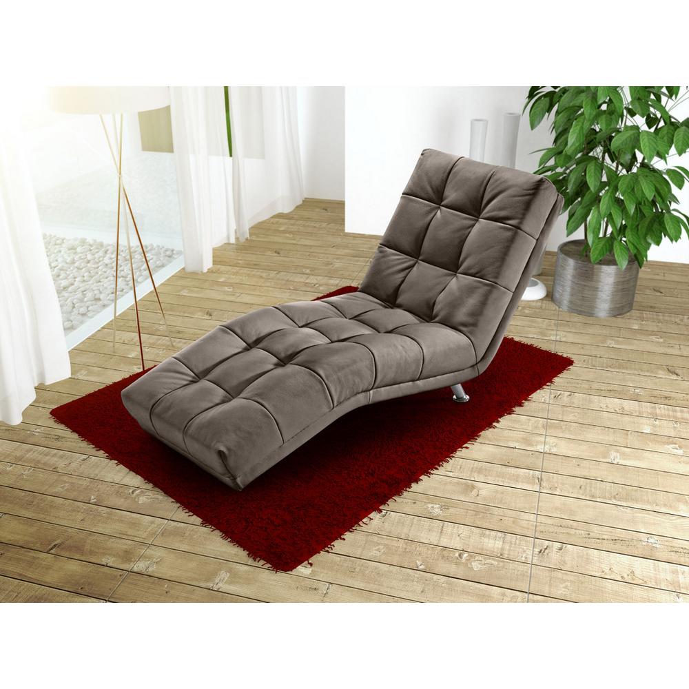 Ležadlo ako stvorené na relaxovanie. V príjemnej látke v univerzálnej šedohnedej farbe, vďaka ktorej zapadne do každého interiéru. Kovové pochrómované nohy vysoké 12cm dotvárajú celkový moderný vzhľad.Vychutnajte si relax s knihou na tomto exkluzívnom ležadle!