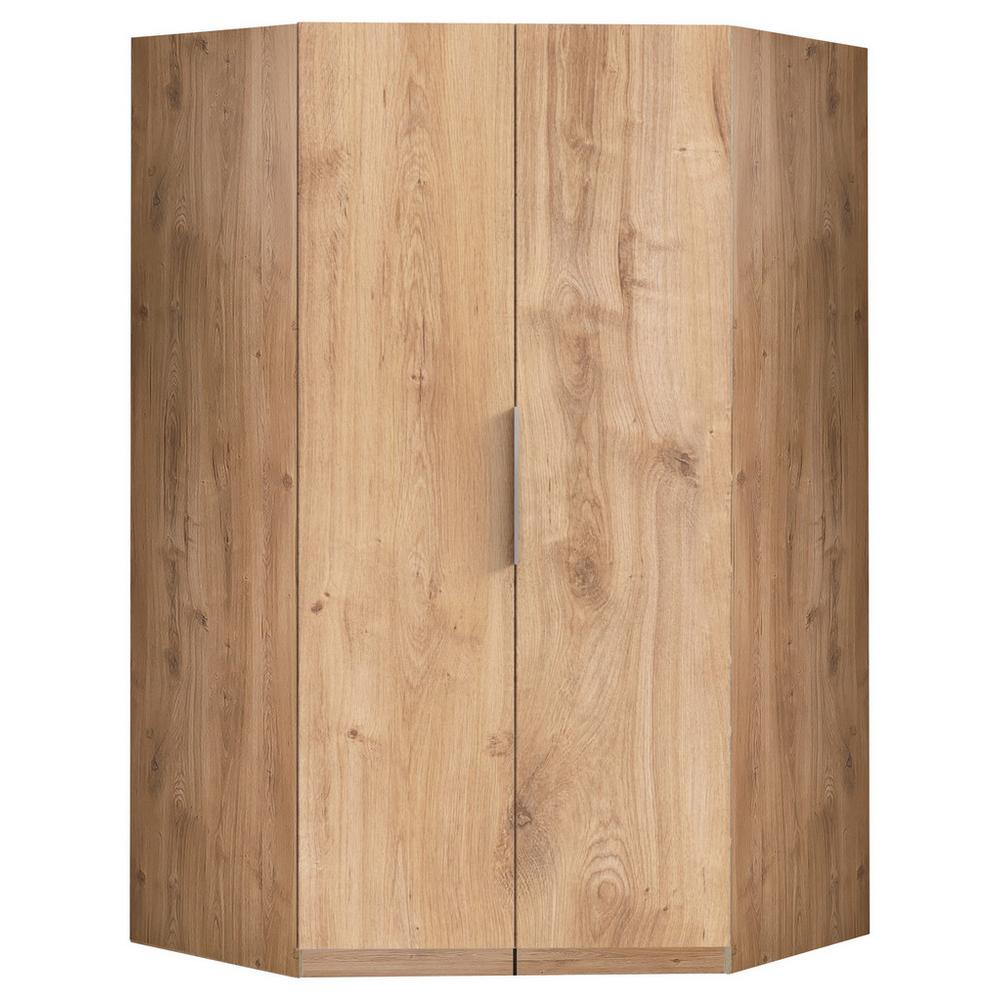 Rohová skriňa v dekore imitácia prírodného dubu, s 2 otočnými dverami, 9 policami, 1 šatnou tyčou, lištové úchytky kovové farby chrómu, vrátane osvetlenia. Š/V/H:cca 120/236/120 cm Objavte aj ostatné skrine z kategórií šatníkové skrine …