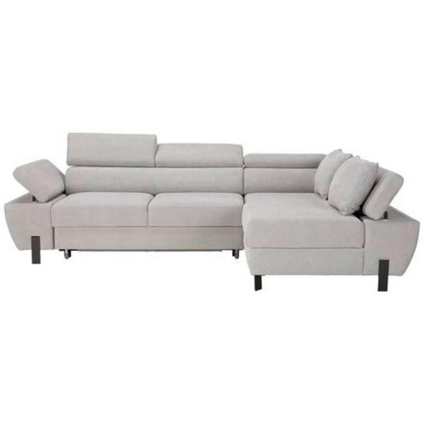 Sedacia súprava MOLINA MINI v tvare L od značky MODERN LIVING má rozmer rohu cca 189 x 277 a ponúka priestor na sedenie a relaxáciu pre cca päť osôb, pričom každé sedadlo možno zaťažiť do 120 kg. Sedačka boduje nadčasovým farebným prevedením so svetlosivým poťahom zo syntetických vlákien. Čierne hranaté nohy dopĺňajú celkový vzhľad a zaisťujú stabilitu. Komfort pri sedení zaručujú vnútorné nosag pružiny a pena. Na ľavom otomane sa dá odpočinúť s natiahnutými nohami. Skvelou funkciou sú polohovacie lakťové opierky, a tiež opierky hlavy, ktoré je možno tak isto nastavovať podľa individuálnych potrieb. Ak potrebujete viac miesta alebo ak máte hostí, ktorí prenocujú, funkcia spánku s plochou na ležanie cca 125 x 210 cm (Š x D) príde vhod. Vankúše, prikrývky a iné veci možno uložiť do integrovaného úložného priestoru. K tejto skvelej sedacej súprave prináležia ešte dva dekoračné vankúše. Originálny zadný poťah umožňuje umiestnenie kamkoľvek do priestoru. Táto sedacia súprava vnesie do vášho príbytku útulnosť, jemnosť a hlavne pohodlie. Dostupná je u nás aj s opačným variantom otomanu
