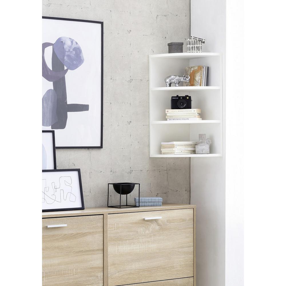 Tento výrobok je k dispozícii IBA ONLINE. Dodanie je zadarmo. Tento závesný rohový regál, od značky CARRYHOME v bielom dekore, je vhodný na prezentáciu dekoratívnych predmetov, obľúbených zberateľských vecí alebo kníh. So svojimi …
