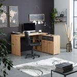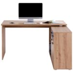 S rozmermi cca 138 x 76,1 x 135,4 cm (Š x V x H) stolík presvedčí ako veľkorysá ponuka pre monitor, notebook, klávesnicu atď. Vyrobený z robustného drevodekoru, povrchy v dube Artisan charakterizujú dobre kombinovateľný dizajn. Vonkajšie strany zásuviek vytvárajú harmonický farebný akcent v hladkej matnej šedej. Stolovú dosku s hrúbkou približne 22 mm je možné zaťažiť až do cca 20 kg.V dvoch otvorených priehradkách, dvoch zásuvkách a za dvomi dvierkami nájdete úložný priestor na šanóny, kancelárske materiály a pracovné vybavenie. Tri police je možné zaťažiť až do cca 5 kg na každú a sú praktickým doplnkom pre prehľadné skladovanie. Strieborné lišty rukoväte dopĺňajú funkčný dizajn s decentnou eleganciou.