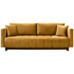 Užite si pohodové večery na rozkladacej pohovke ALIDA! Tento nábytok ponúka príjemné sedenie aj ležanie. S rozmermi cca 227 x 87 x 102 cm (Š x V x H) a výškou sedenia cca 44 cm ju skvelo využijete aj v menších miestnostiach. Žltý poťah s ozdobným prešívaním oživí každý priestor. Súčasťou sú aj dva veľké vankúše na opretie chrbta, lakťové opierky a dva dekoračné vankúše. Pohovku je možné v niekoľkých jednoduchých krokoch premeniť na lôžko s plochou na spanie cca 149 x 197 cm (Š x D). Do úložného boxu sa pohodlne zmestia vankúše a prikrývky pre nocujúcich hostí. Pohovka je dostupná aj v iných farbách. Pozrite si v našom eshope ďalšie žlté pohovky, žlté sedačky,