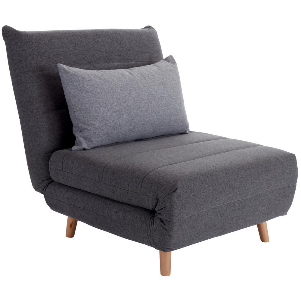 Rozkladacia pohovka SIMON je perfektnou voľbou, ak máte doma obmedzený priestor, ale napriek tomu chcete svojim hosťom ponúknuť miesto na spanie. Model, s rozmermi približne 77 x 84 x 91 cm (Š/V/H) je možné zložiť ako moderné kreslo alebo rozložiť na lôžko alebo diván. Vďaka sivému textilnému poťahu a nohám v prírodnej farbe je pohovka obzvlášť príjemná svojim útulným a priamym dizajnom. Pre väčšie pohodlie obsahuje tiež pohodlný svetlosivý vankúš na opretie. Po rozložení ponúka pohovka plochu na ležanie cca 192 x 77 cm. Ideálne pre hostí! Tento nábytok je možné zaťažiť až do 120 kg. Operadlo je individuálne nastaviteľné. Najdôležitejšie informácie: Farba: svetlosivá, sivá Povrch: syntetický Typ výplne: pena Vrátane vankúša 1 operadlo Nohy: borovicové drevo Rozmery cca v cm (Š x V x H): 77 x 84 x 91 Počet miest na sedenie: 1 Výška sedadla približne v cm: 39 Hĺbka sedadla približne v cm: 91 Funkcia spánku Ležiaci priestor vhodný pre ľudí: 1 Ležiaca plocha približne v cm: 77 x 192 (Š x D) Typ funkcie postele: rozkladacia posteľ