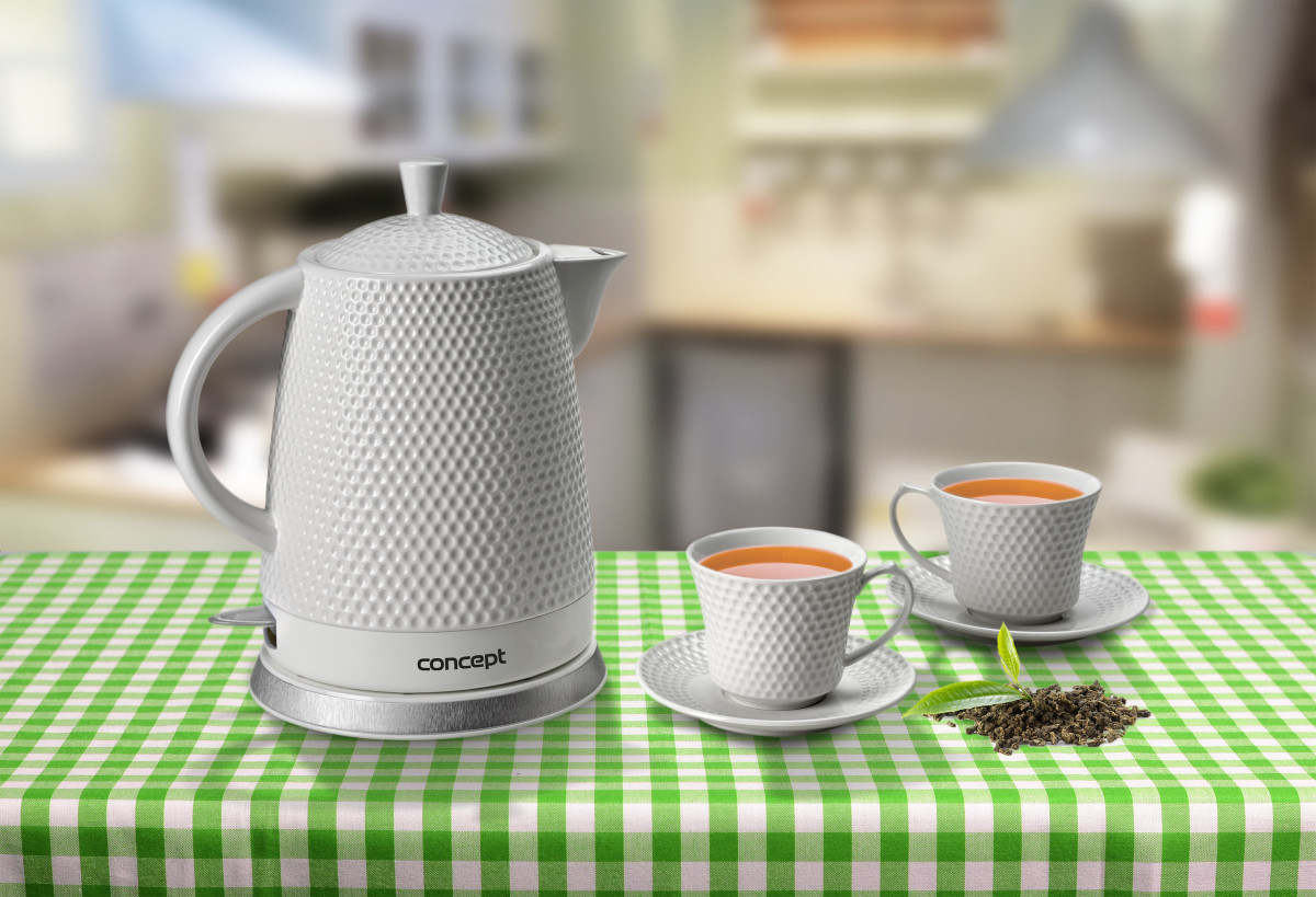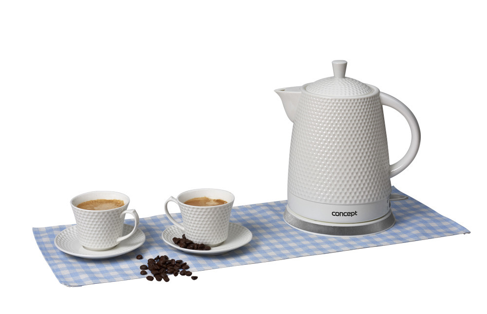 Rýchlovarná kanvica keramická 1,5 l s dvoma šálkami a podšálkami CONCEPT RK 0040