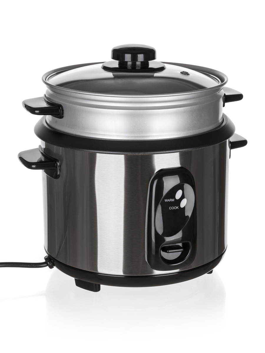 Nerezový ryžovar veľmi jednoducho uvarí chutnú ryžu bez vašich starostí. Po uvarení sa hrniec automaticky vypne a nastaví do funkcie Keep Warm, ktorá ryžu udrží teplú až po niekoľko hodín. Hrniec je plne automatický a pracuje na princípe varenia v pare. Môžete v ňom tak pripravovať aj zeleninu alebo ryby. Súčasťou balenia je odmerka, ktorá slúži k jednoduchému plneniu hrnca, naberačka na ryžu a nástavec pre varenie v pare (na zeleninu či ryby). Nepriľnavý povrch vnútornej nádoby uľahčuje ako jej používanie, tak i údržbu. Sklenená pokrievka je vybavená otvorom pre únik prebytočnej pary. Praktické rukoväte po oboch stranách uľahčujú manipuláciu. Ryžovar je stabilný vďaka protišmykovým nôžkam.Príkon: 500 W. Prevádzkové napätie: 220 – 240 V, 50 – 60 Hz. Rozmery: dĺžka 28 cm, šírka 27 cm, výška 27 cm. Objem: 1,5 l. Dĺžka prívodného kábla: 1 m.RyžovarNerezová oceľPlne automatickýFunkcia Keep Warm udrží teplú ryžu až po niekoľko hodínVarenie v pareIdeálna i pre prípravu zeleniny alebo rýbVarenie bežnej ryže aj ryže na sushiVnútorná nádoba s nepriľnavým povrchomSklenená pokrievka s otvorom pre únik paryPraktické rukoväteJednoduchá údržbaProtišmykové nôžkyPríkon a napätie: 500 W / 220 – 240 V, 50 – 60 HzPrívodný kábel 1 mKontrolka prevádzkySúčasťou balenia: odmerka, naberačka a nástavec pre varenie v pare