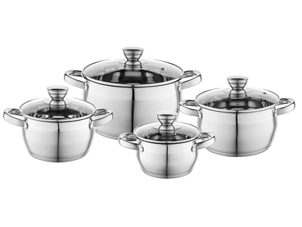 Sada hrncov FLORINA OLIVIER 8 ks je vhodná pre všetky spôsoby ohrevu vrátane indukcie. Hrnce sú vyrobené z nehrdzavejúcej ocele s hrúbkou steny 0,4 mm. Sklenené pokrievky sú vybavené otvorom pre únik pary. Vnútro hrncov je leštená nehrdzavejúca oceľ. Z vonkajšej strany sú hrnce v matnej nerezovej úprave. Sada je vhodná do umývačky.Sada hrncov FLORINA OLIVIER 8 ksNehrdzavejúca oceľHrúbka stien 0,4 mmNerezové úchytkySklenené pokrievky s otvorom pre paruVnútro leštená nehrdzavejúca oceľVonkajšia časť v matnom nerezeVhodné pre všetky varné spotrebiče: plyn, elektrické varné dosky, sklokeramické platne, indukciaSada nie je vhodná do rúry Vhodná do umývačky Sada obsahuje:Hrniec s pokrievkou: 14 x 8,5 cm, objem 1,25 lHrniec s pokrievkou: 16 x 9,5 cm, objem 1,75 lHrniec s pokrievkou: 18 x 10,5 cm, objem 2,5 lHrniec s pokrievkou: 22 x 12 cm, objem 4,5 l