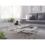 Tento výrobok je k dispozícii IBA ONLINE. Dodanie je zadarmo. S touto zaujímavou súpravou dvoch konferenčných stolíkov môžete svoju obývačku premeniť v niečo špeciálne. Stolíky zaujmú pevným rámom z lakovanej ocele v zlatej farbe a …