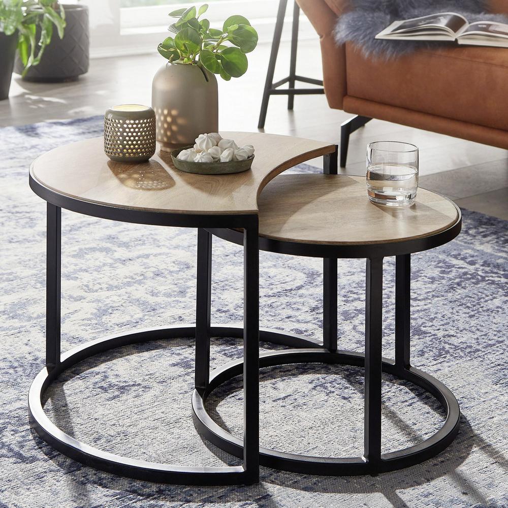Tento výrobok je k dispozícii IBA ONLINE. Dodanie je zadarmo. S touto dvojdielnou súpravou konferenčných stolíkov svetlohnedej a čiernej farby získate pre váš domov štýlový a elegantný doplnok. Oba okrúhle konferenčné stolíky bodujú kovovým rámom s práškovým nástrekom a stolovou doskou z mangového dreva, hrubou asi 15 mm. Tieto trendy konferenčné stolíky, či už samostatne alebo vo dvojici, vám ponúkajú praktický a flexibilný odkladací priestor. Rozsah dodávky zahŕňa 2 konferenčné stolíky v nasledujúcich veľkostiach (cca Š x V x H): 60 x 41 x 41 cm a 36 x 44 x 36 cm. Pozrite si v internetovom obchode Möbelix ďalší nábytok z kategórií okrúhle konferenčné stolíky,
