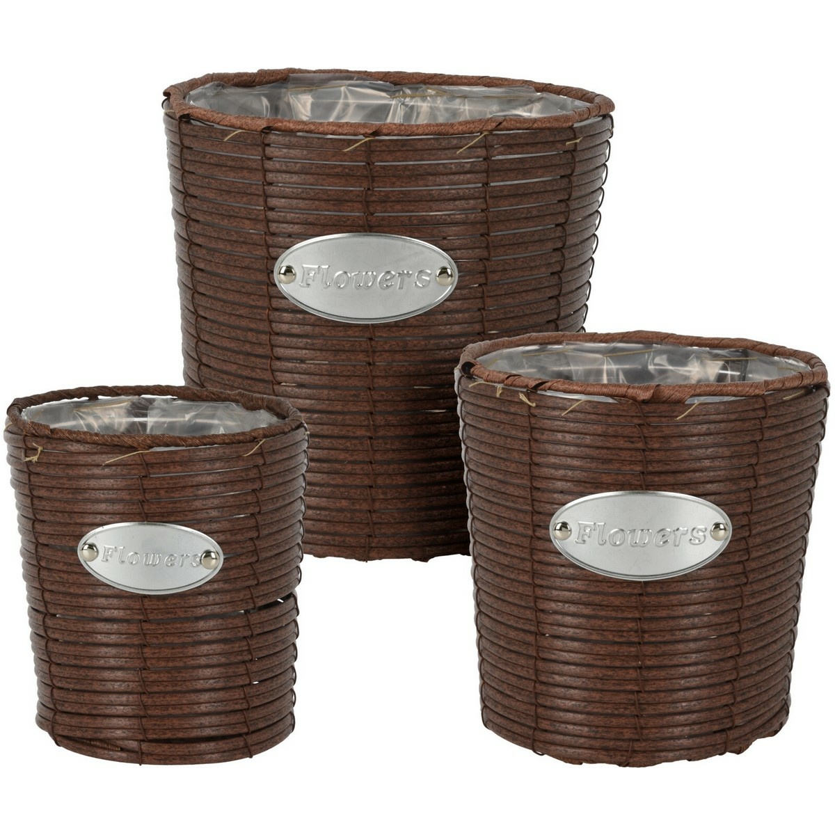 Sada kónických obalov na kvetináče Flowers hnedá, 3 ks