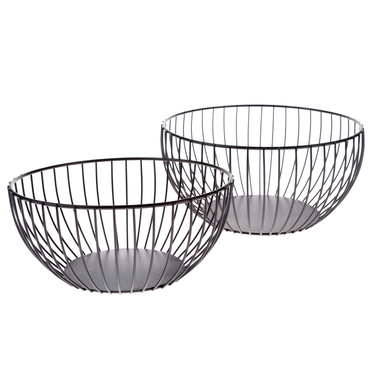 Dve drôtené misy na ovocie jednoduchého elegantného vzhľadu sú praktickým doplnkom do každej domácnosti s mnohostranným využitím na skladovanie ovocia aj ako dekorácia.Misy sú vyrobené z kovového lakovaného drôtu. Výhodou drôtených mís je to, že sú otvorené a vzdušné a ovocie v nich rozložené sa čoskoro nekazí. Drôtené misky s plným dnom sa dajú použiť zase na malé ovocie ako čerešne, višne, ríbezle alebo egreše a mimo sezóny poslúžia na cukrovinky alebo iné dobroty.