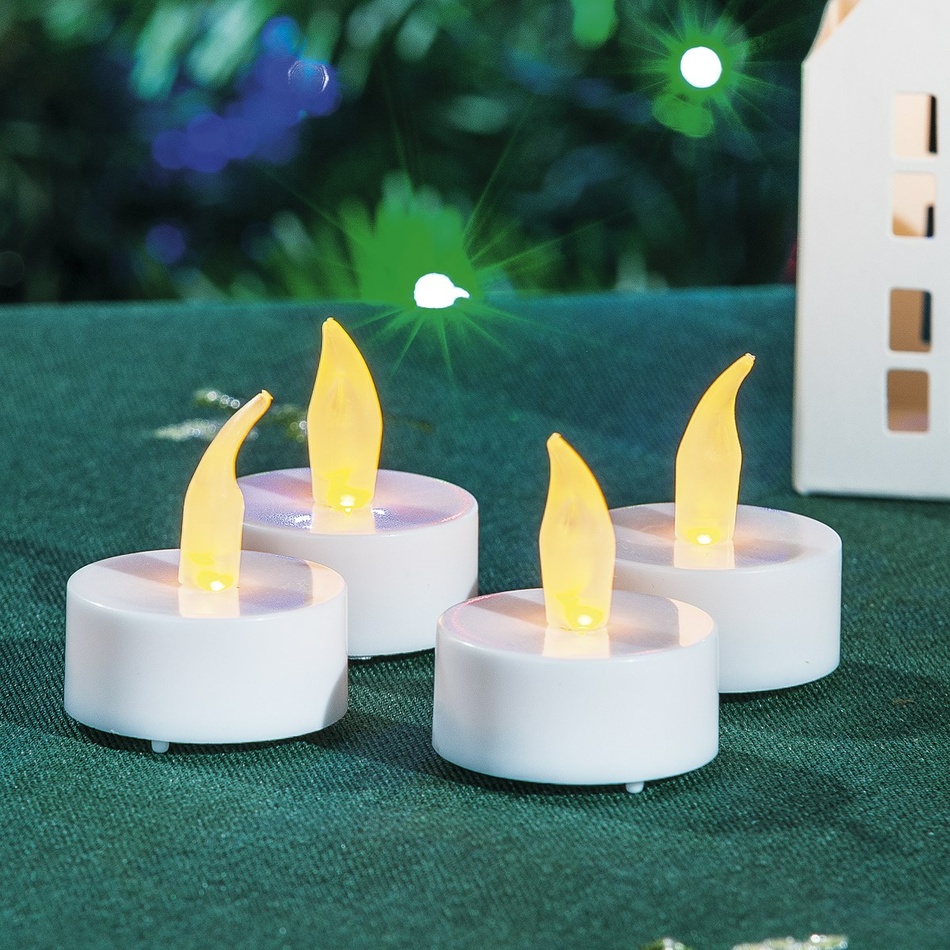 Nudia vás klasické sviečky? Kúpte si túto sadu, ktorá svieti pomocou LED žiaroviek. Majú funkciu časovaného zapnutia a funkciu blikania. Napájané sú pomocou 4 batérií CR2032, ktoré sú súčasťou balenia.Pr. sviečky 3,5 cm, celková výška 4,5 cm, výška výška bez plamienka 2 cm