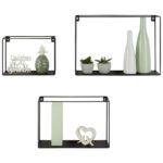 Táto trojdielna sada nástenných políc v čiernej farbe je štýlovým a praktickým doplnkom do každého domova. Kovové poličky v tvare klietok bodujú svojím vzhľadom a dajú sa ľahko pripevniť k stene. Ponúkajú priestor pre individuálny dizajn …