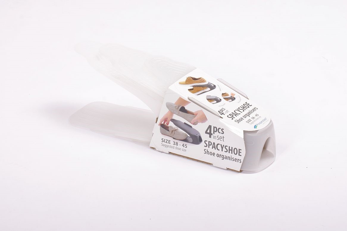 Kto by nepoznal to večné hľadanie stratených topánok v predsieni. Sada organizérov na obuv prináša jednoduché a okamžité riešenie. Prakticky a prehľadne prostredníctvom organizérov uložíte svoje topánky a tým ušetríte až o polovicu viac miesta. Materiál: plast.Rýchle a úsporné riešenie pre všetky páry topánokProtišmykový povrchPrehľadné uloženie pre jednotlivé páry obuviVýrazná úspora miesta varianty:sada 5 ks pre veľkosť obuvi 30 – 38 vo farbe antracitovej alebo transparentnej (dĺžka 42 cm, šírka 9 cm, výška 12,5 cm)sada 4 ks pre veľkosť obuvi 38 – 45 vo farbe antracitovej alebo transparentnej (dĺžka 42 cm, šírka 10,5 cm, výška 14,5 cm)