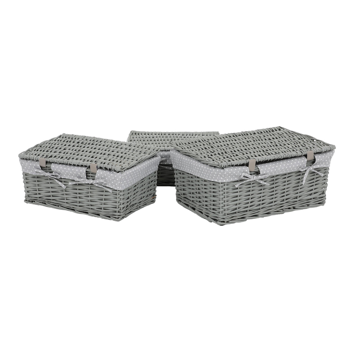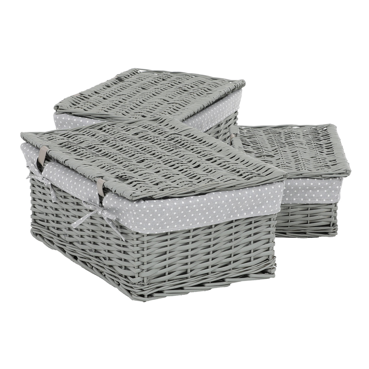 Sada prútených košov s vekom Sivá bodka, 3 ks, 3 veľkosti, 49 x 22 x 35 cm