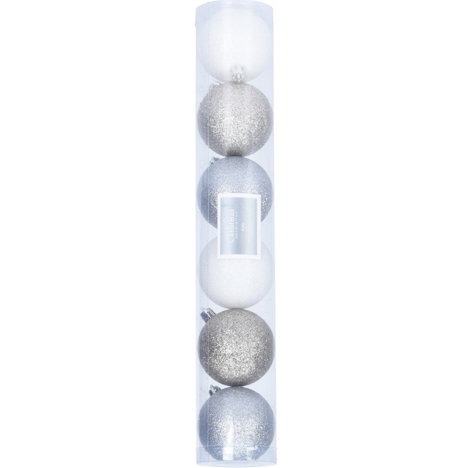 Sada vianočných ozdôb Glitter strieborná, pr. 6 cm, 6 ks