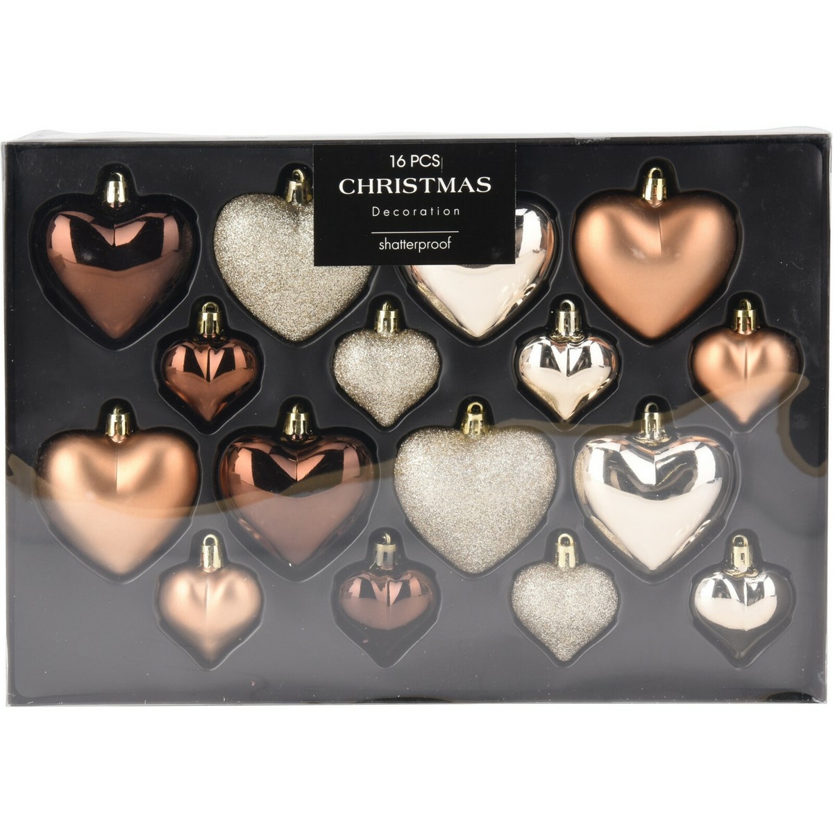 Dodajte svojim vianočným dekoráciám ligot a lesk s touto sadou 16 vianočných ozdôb v tvare srdiečok, ktoré poskytujú luxusný a slávnostný vzhľad v elegantných odtieňoch zlatej a medenej farby. Perfektná voľba na zdobenie vášho vianočného stromčeka, girland alebo iných sviatočných dekorov. Doplňte svoju vianočnú výzdobu týmito oslnivými srdiečkami a vytvorte si očarujúcu sviatočnú atmosféru.Ozdoby sú v sade v dvoch veľkostiach: