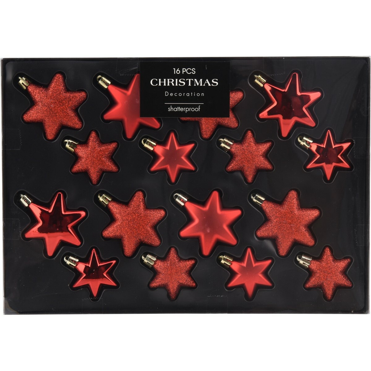 Dodajte svojim vianočným dekoráciám ligot a lesk s touto sadou 16 vianočných ozdôb v tvare hviezdičiek, ktoré poskytujú luxusný a slávnostný vzhľad v elegantnej tmavočervenej farbe. Perfektná voľba na zdobenie vášho vianočného stromčeka, girland alebo iných sviatočných dekorov. Doplňte svoju vianočnú výzdobu týmito oslnivými srdiečkami a vytvorte si očarujúcu sviatočnú atmosféru.Ozdoby sú v sade v dvoch veľkostiach: