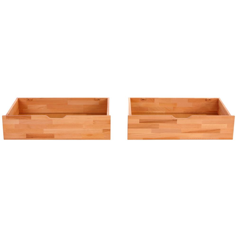 Úložný priestor, olejovaný masívny buk, 2 zásuvky na kolieskach, pre vloženie pod posteľ.Š/V/H:cca 86/21/69,5 …