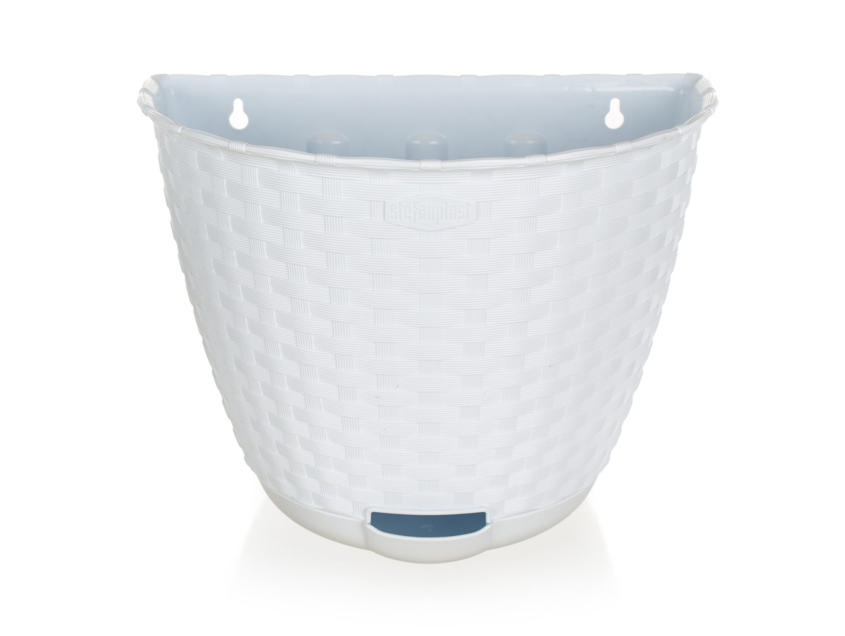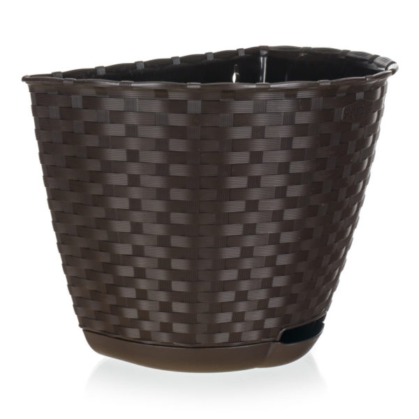 Najväčšia výhoda tohto kvetináča spočíva v schopnosti zavlažovať rastliny bez vašej prítomnosti. Samozavlažovací nástenný kvetináč uchováva vodu v zásobníku v spodnej časti a pomocou nasávania sa voda dostáva ku koreňom rastlín. Kvetináč s imitáciou ratanového prepletenia sa bude skvele vynímať zavesený nielen doma, ale aj na balkóne, terase a záhrade.Objem: 5 l. Rozmery: 28 x 19 x 21 cm. Materiál: plast.Samozavlažovací kvetináčZávesnýPologuľatý tvarZavlažuje rastliny bez vašej prítomnostiVoda zo spodnej časti sa nasáva ku koreňomObjem 5 l