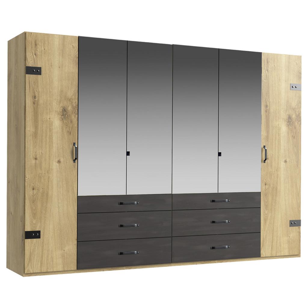Tento artikel je k dispozícií IBA ONLINE. Pripravte sa na individuálny a atraktívny úložný priestor! Otočné dverové šatníkové skrine DETROIT skórujú svojím atraktívnym vzhľadom a dobre navrhnutým priestorom. Táto spálňová skrinka má priestranné rozmery približne 300 x 216 x 58 cm (Š x V x H). Bundy, pracovné odevy, košele a blúzky sa dajú na 4 šatných tyčiach pohodlne a s prehľadom zavesiť. 4 nastaviteľné police so šírkou približne 96 cm alebo 48 cm sú ideálne na svetre, trička ale aj posteľnú bielizeň. 6 širokých zásuviek poskytne zasa dostatok miesta pre spodné prádlo, čapice a šály. Určite oceníte aj 4 zrkadlá na čelnej strane. Tento tovar sa nenachádza na našich predajniach. Objednať si ho môžete cez internet alebo na každej predajni.