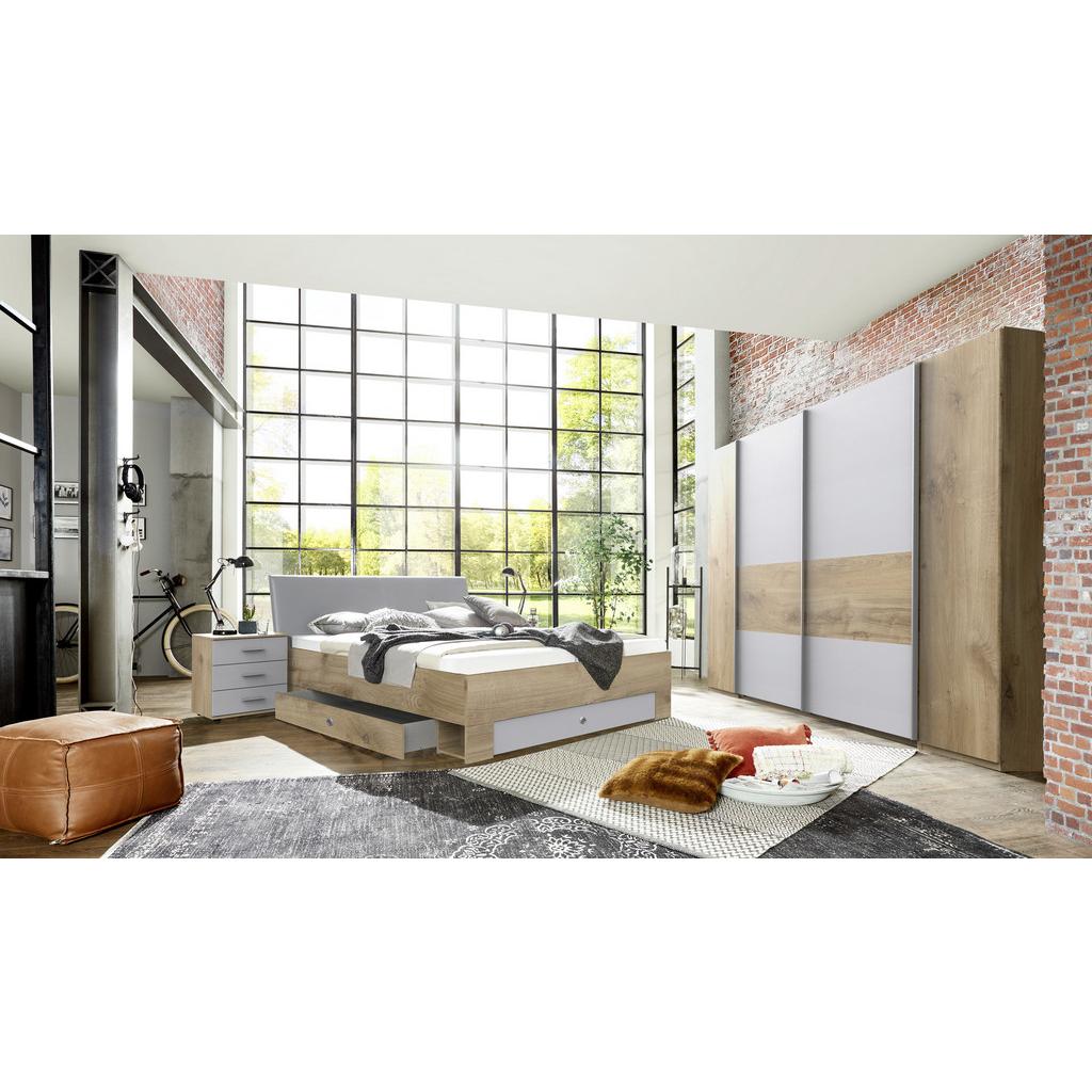 Tento tovar je k dispozícií IBA ONLINE. Šatníková skriňa OSLO kombinuje to najlepšie. Vďaka modernému dizajnu a harmonickej farebnej škále v prevedení dub a svetlošedá je tento úložný nábytok jedinečným pútačom pozornosti, ktorý dodáva vašej spálni úžasný prízvuk. Skrinka ponúka so svojimi rozmermi cca 272 x 210 x 65 cm (š xvxh) veľa priestoru pre vaše oblečenie. Je vybavená dvoma praktickými šatnými tyčami na oblečenie, na ktoré môžete zavesiť napríklad obleky, košele a šaty. Okrem toho sú k dispozícii tri police, z ktorých každá môže byť zaťažená približne do 8 kg. Praktické, priestranné a jednoducho štýlové: Nechajte sa inšpirovať šatníkovou skriňou s otočnými dverami OSLO a tešte sa na domácky pôsobivý dizajn v spálni. K dispozícií je aj manželská posteľ a nočné stolíky z rovnakej série. Tento tovar sa nenachádza na našich predajniach. Objednať si ho môžete cez internet alebo na každej predajni.